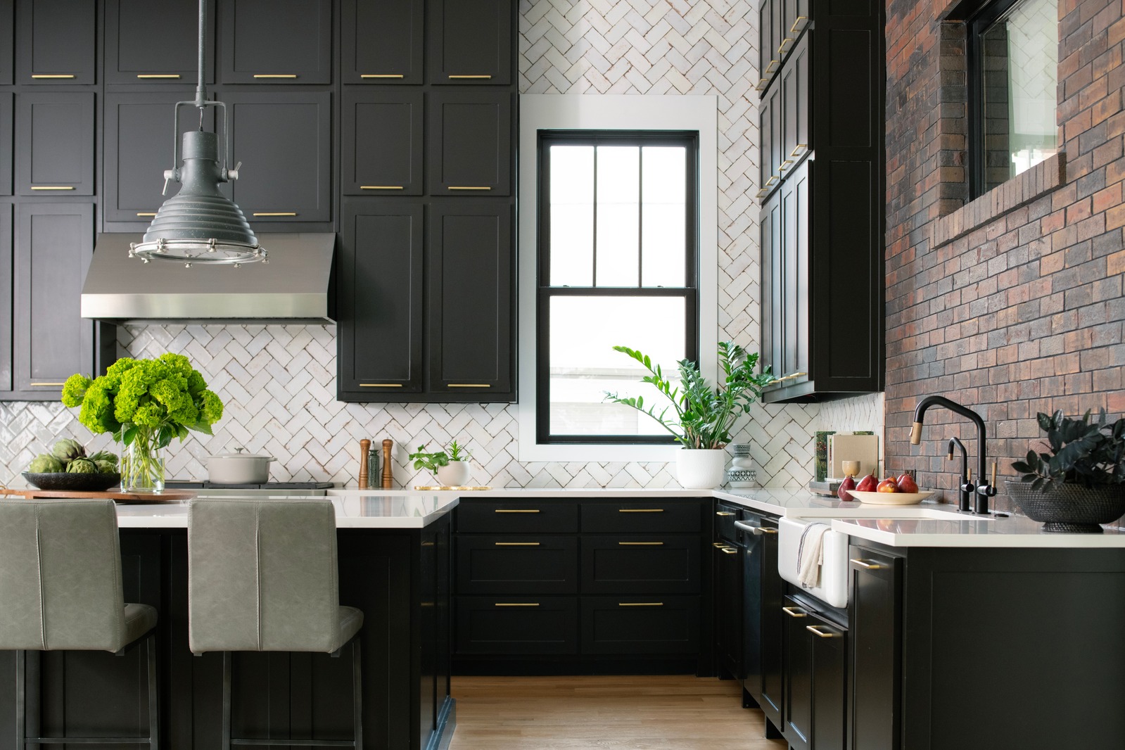 Balance the cabinetry with warm tan or cream walls, then add pale yellow accents inside open shelving, a breakfast nook, or even through small décor elements. This color pairing feels bright, approachable, and effortlessly livable.
